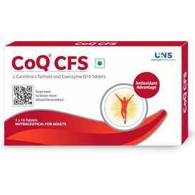 Description: CoQ CFS is a combination of Coenzyme Q10 (Ubiquinol) 60 mg and L-Carnitine 1000mg designed for patients suffering from chronic fatigue syndrome.
